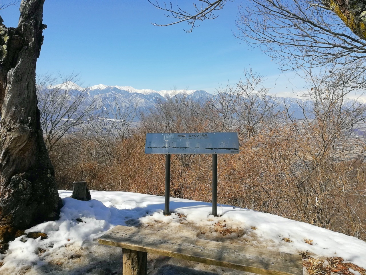 登りきった広場では、ベンチに座りながら、北アルプスを眺めることができます。
