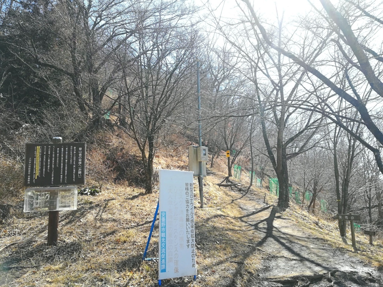 駐車場に車を置いたら、早速登山開始です。登山口は駐車場の入り口のところにあるので、すぐわかりますよ。