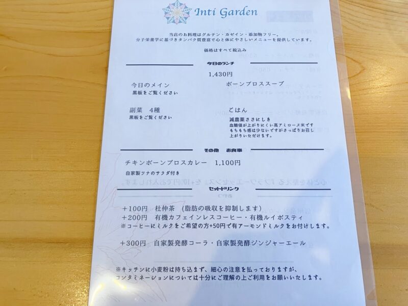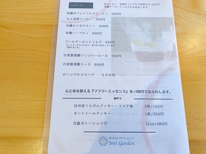 「森の中のおうちカフェ&ベッド Inti Garden」のメニュー