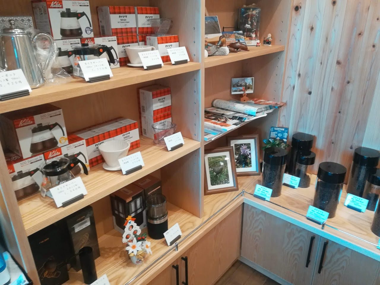 カウンター側にはコーヒーのドリップの道具も置いてあります。