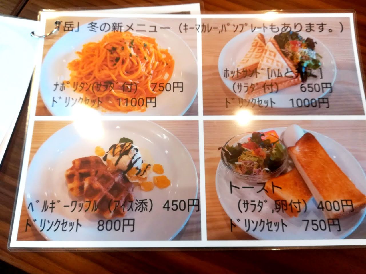 テーブルにはメニューが置いてあります。