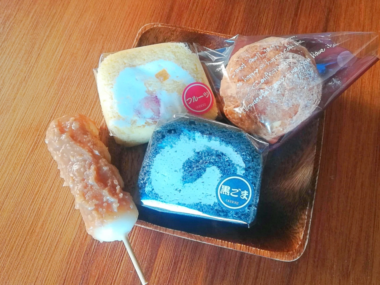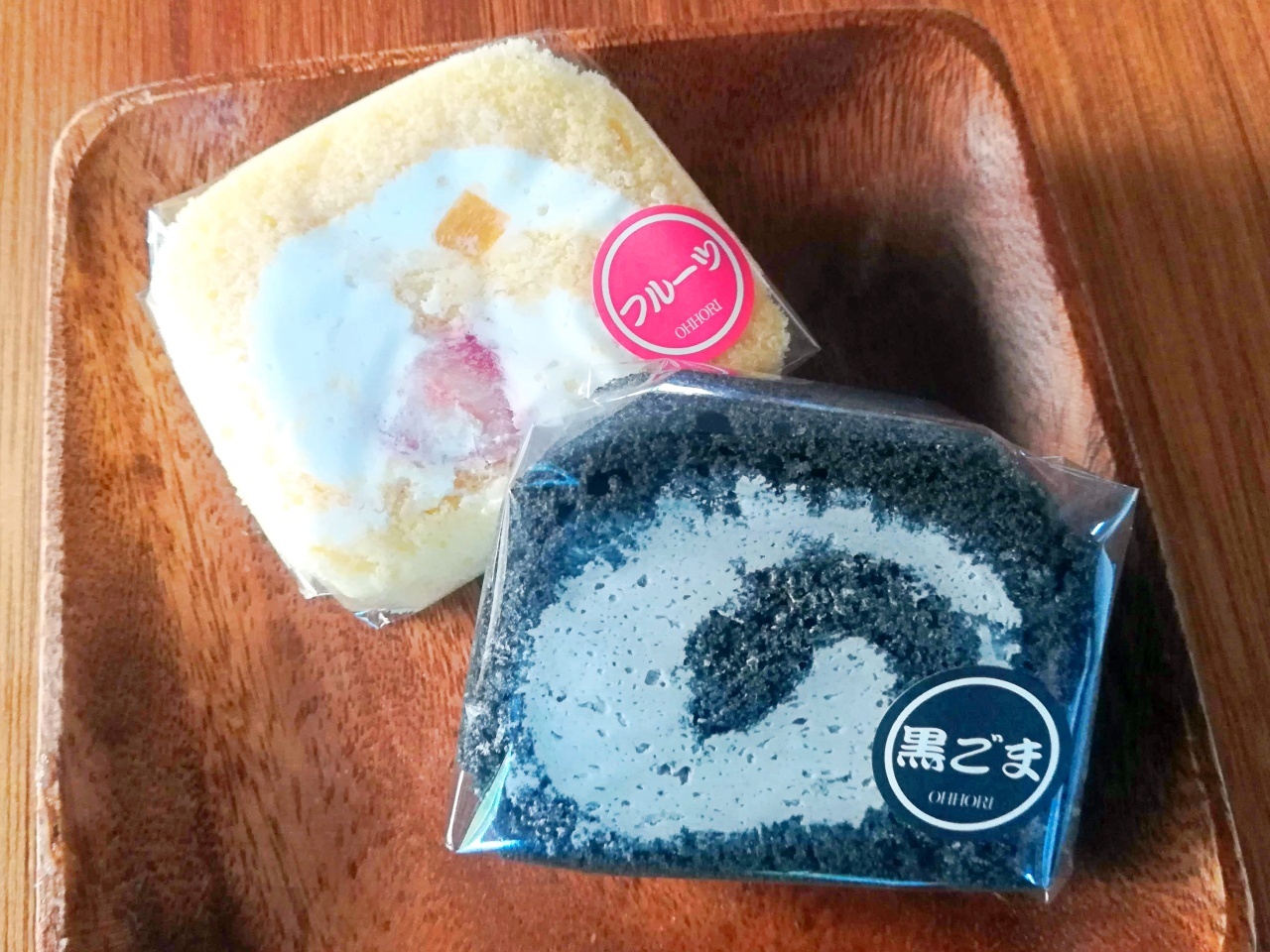 ロールケーキは爽やかなフルーツと黒ごまを購入しました。