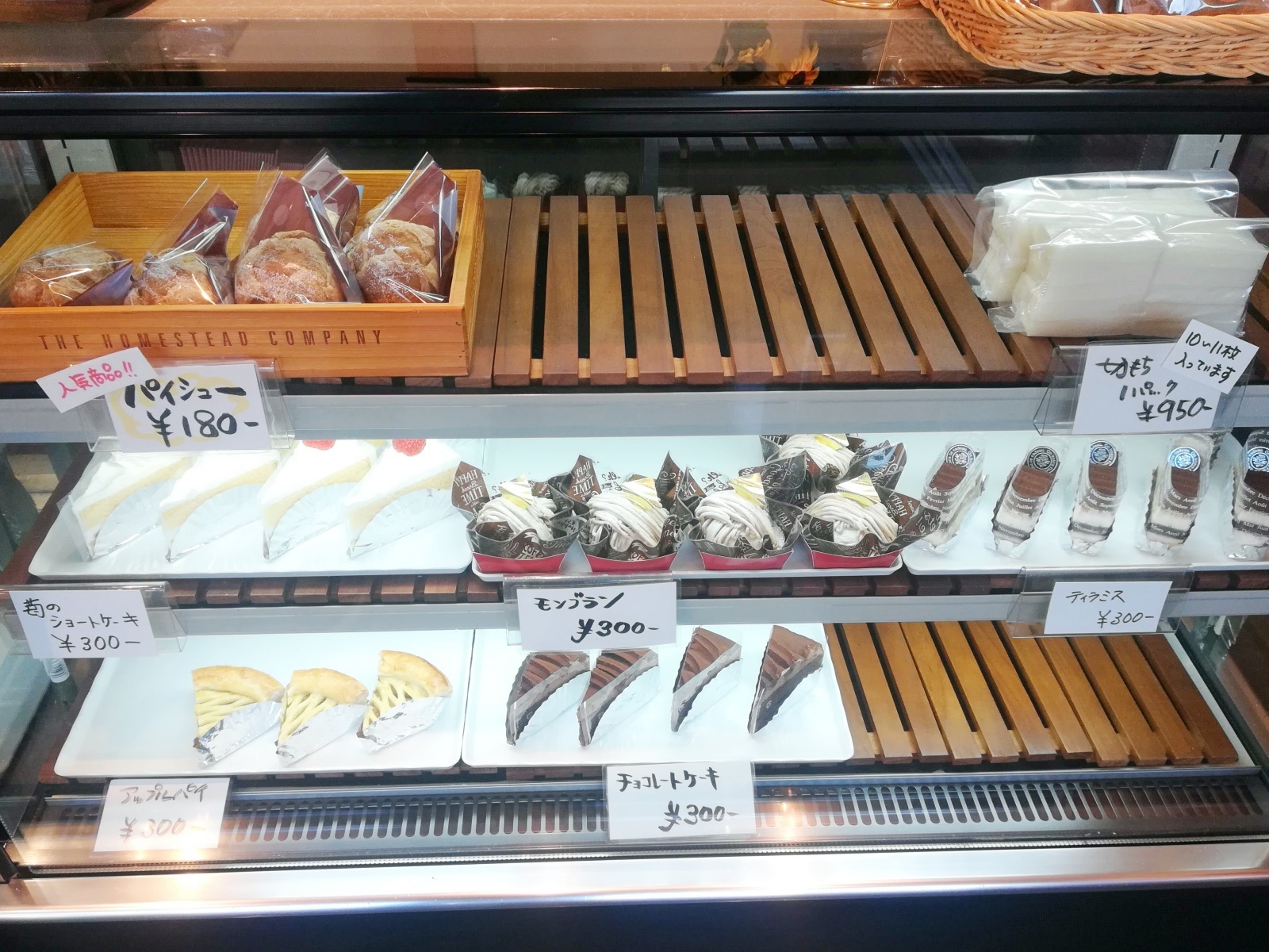 ケーキのショーケースには、美味しそうなモンブランやアップルパイ、ショートケーキ。