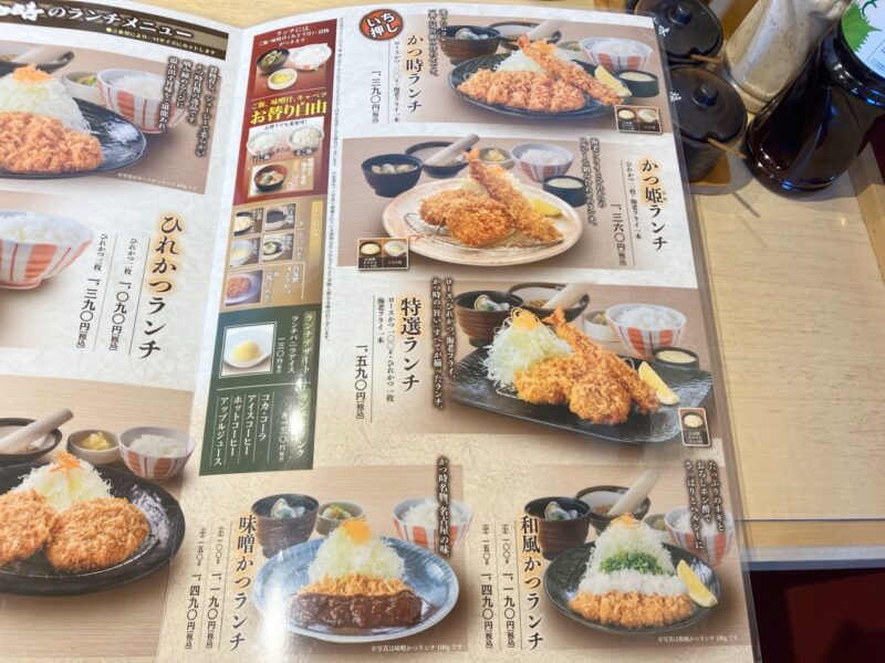 海老天が乗ったかつ時ランチやかつ姫ランチとメニューも目白押しです。