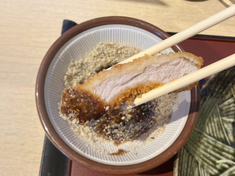 とんかつに使っているお肉は穀物で育ちの豚肉。ジューシーで柔らかいと評判のお肉です。