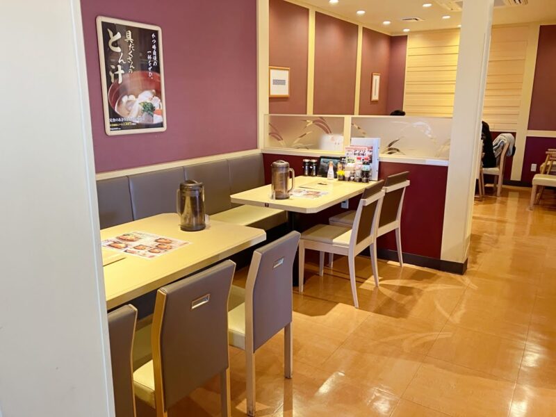 「かつ時 豊科店」の店内は、ボックス席やテーブル席が並びます。
