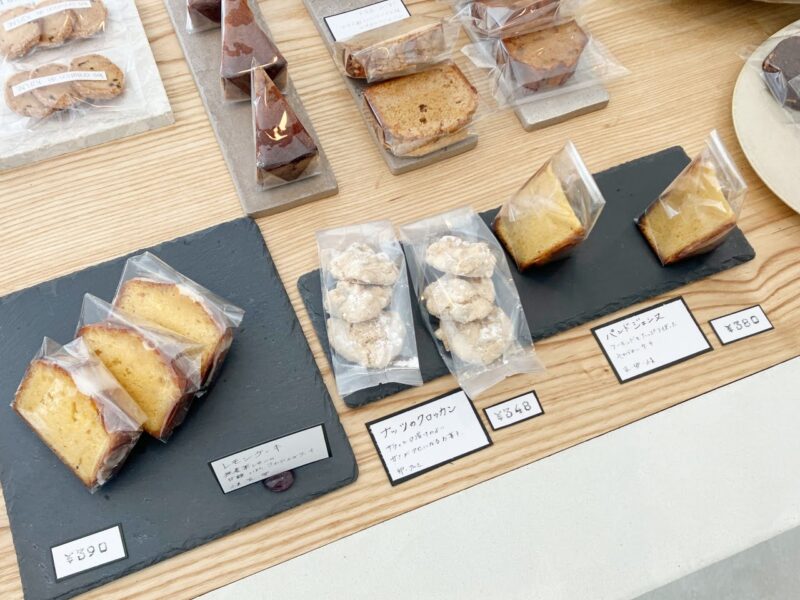 パウンドケーキやクッキーなど、おいしそうな焼き菓子がズラリと並んでいます。