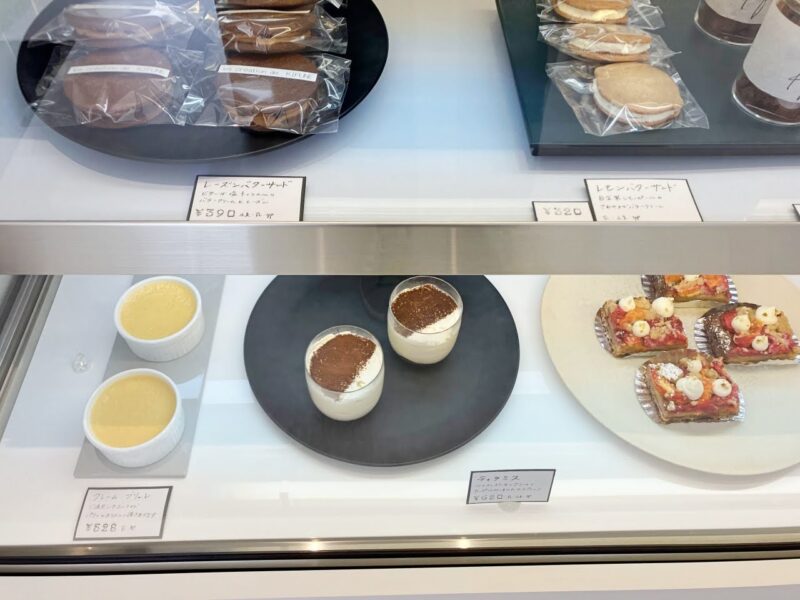 ショーケースには、レーズンサンドやブリュレ、ティラミスなど。