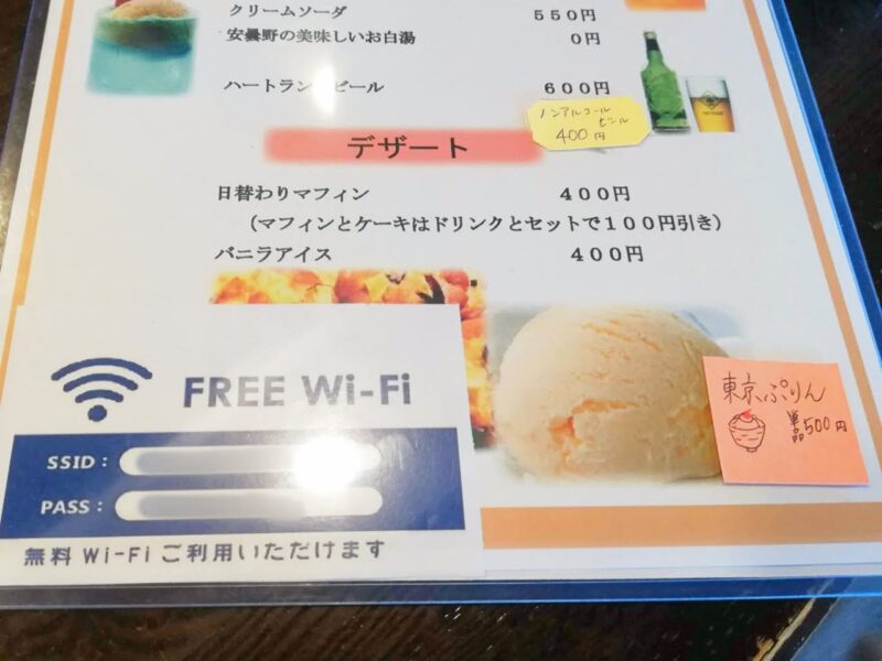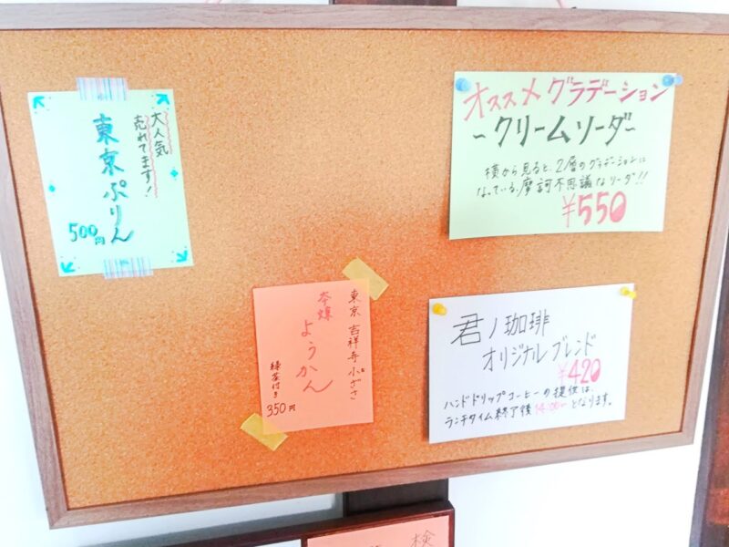 スイーツのメニューは入り口のコルクボードにも貼ってありました。