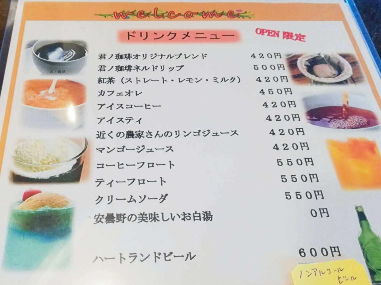 安曇野の食材を使った料理やスイーツを楽しめる「君ノ珈琲」。