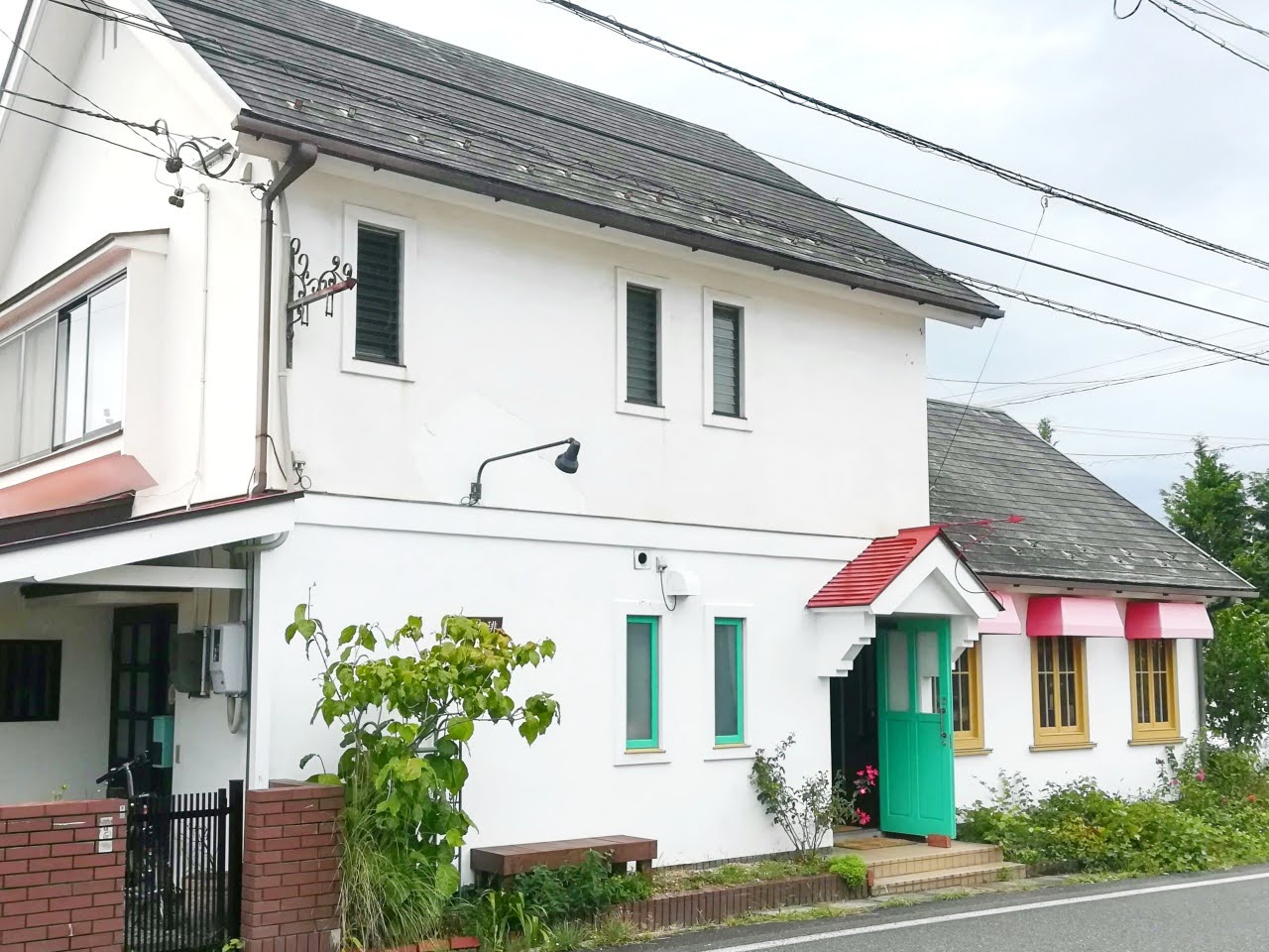 可愛らしい緑のドアと赤いシェードがついている一軒家が「君ノ珈琲」です。