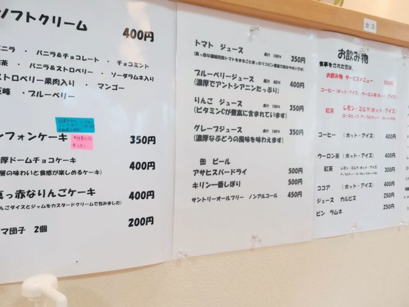 ソフトクリームやシフォンケーキ などスイーツも充実。