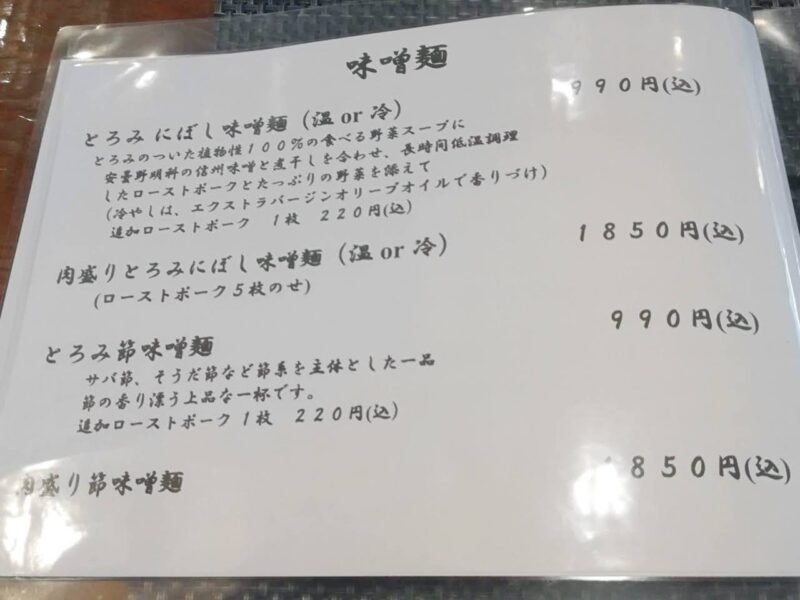 とろみ節味噌麺は、さば節・そうだ節などの節系を主体としたラーメン。こちらも気になりますね。