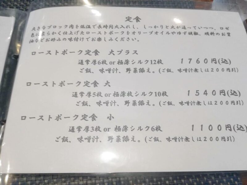 人気のローストポークは話題になっており、定食でいただくこともできます。