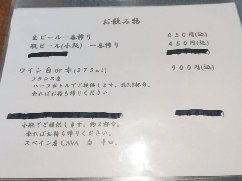 ドリンクはビールかワインがありますよ。