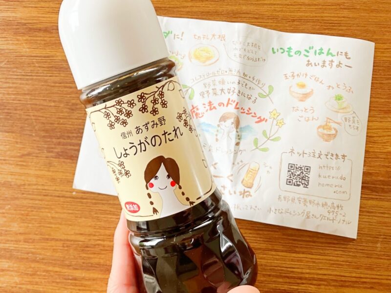 今回は、調理にもドレッシングにも使えるしょうがのたれを購入しました。