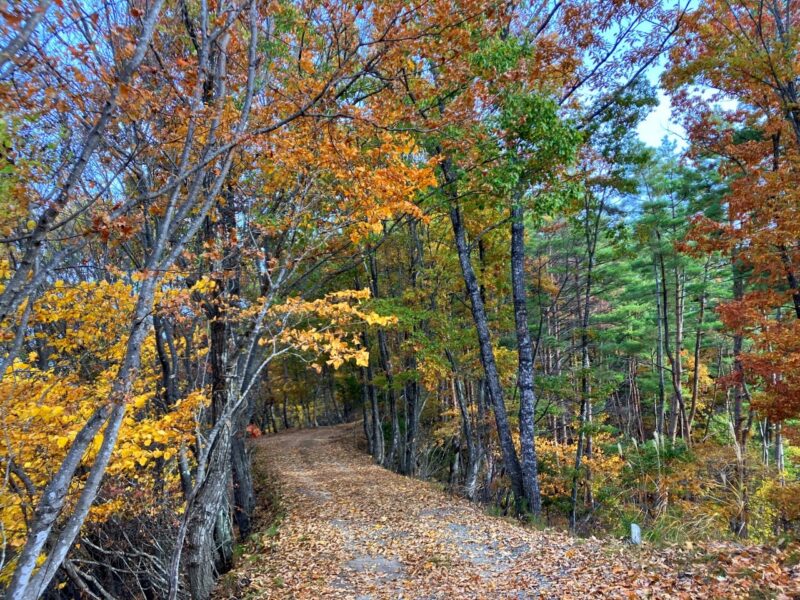 紅葉シーズンのさんぽにちょうどよい「旧国鉄篠ノ井線廃線敷」。