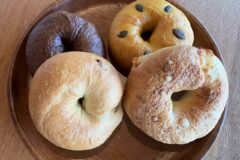 テリヤキチキンとサワークリームオニオン、味噌モッツア、キャラメルナッツとりんご、レモンアーモンドクリーム、里山の恵みと、用意されていました。