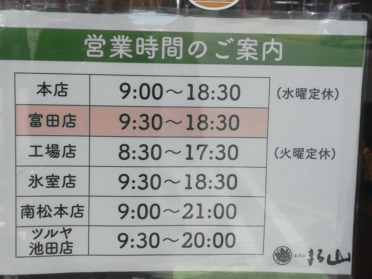「里菓抄まる山 富田店」の店舗情報