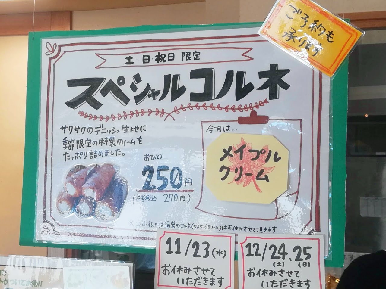週末限定のスペシャルコルネも美味しそうです。