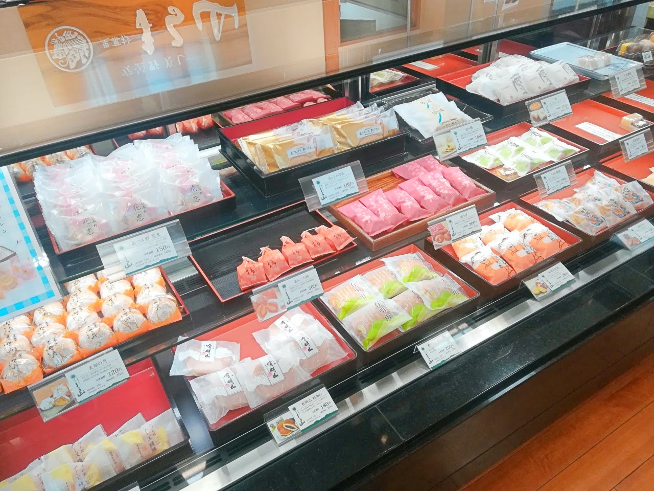 和菓子や洋菓子がずらりと並んでいますよ〜。