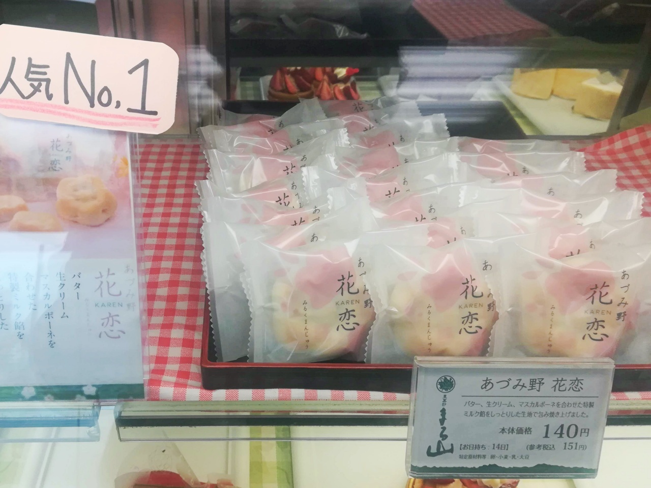 人気No1の「あづみ野 花恋」は、バター・生クリーム・マスカルポーネを使った滑らかなミルク餡を包んだリンゴの花の形をしたお菓子です。