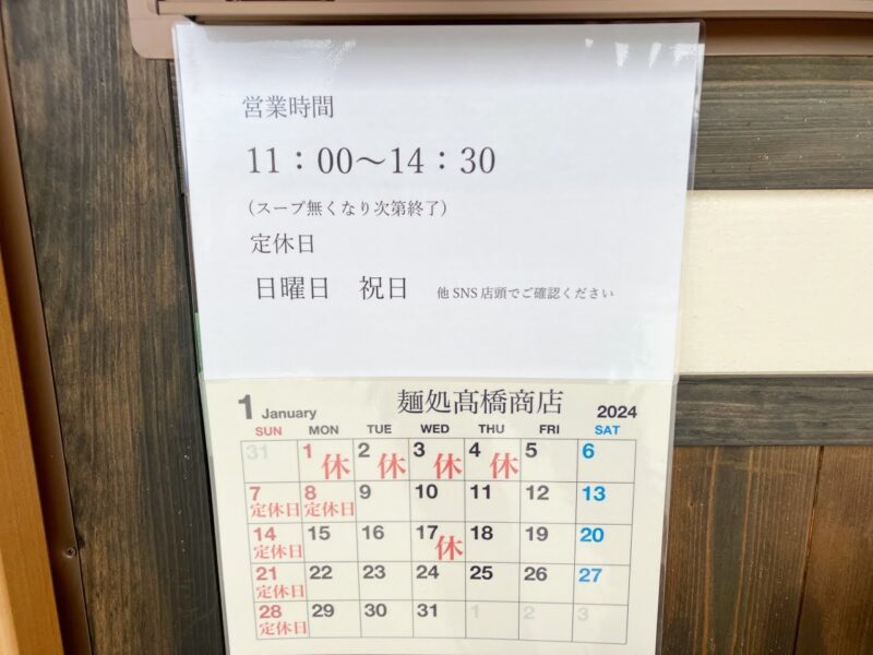 営業時間:11:00〜14:30 スープがなくなり次第終了