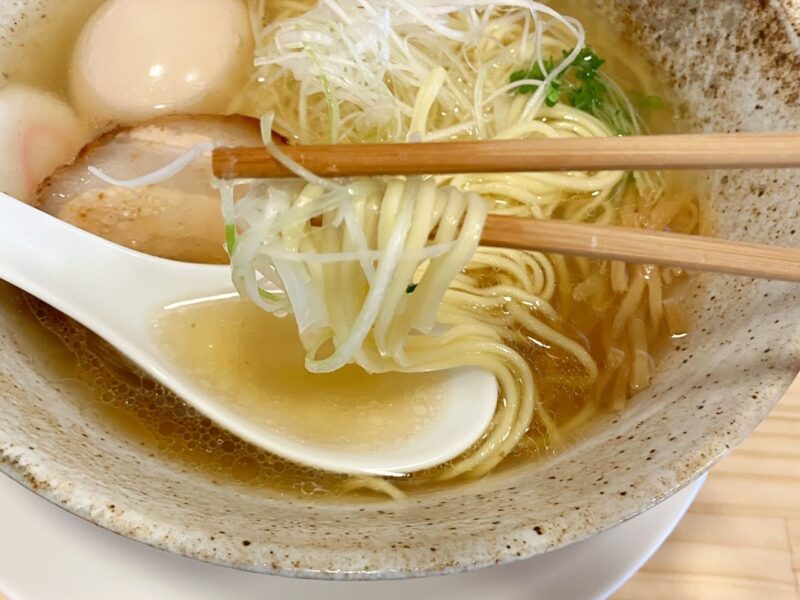 やさしい味わいでスッと飲み干してしまえるスープです。麺を味わいながら口に運ぶスープに手が止まりません。