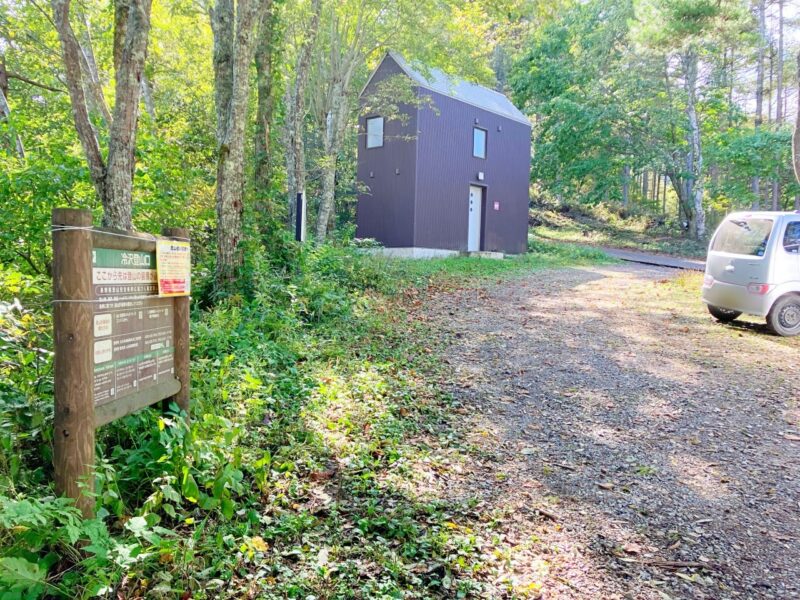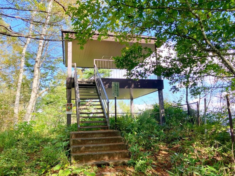 駐車場を過ぎて、少し上と展望台の建物が目に入ります。