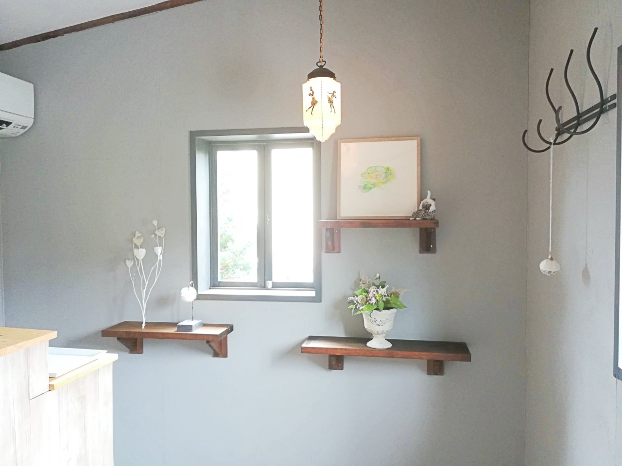 グレーの壁に白いアクセント。