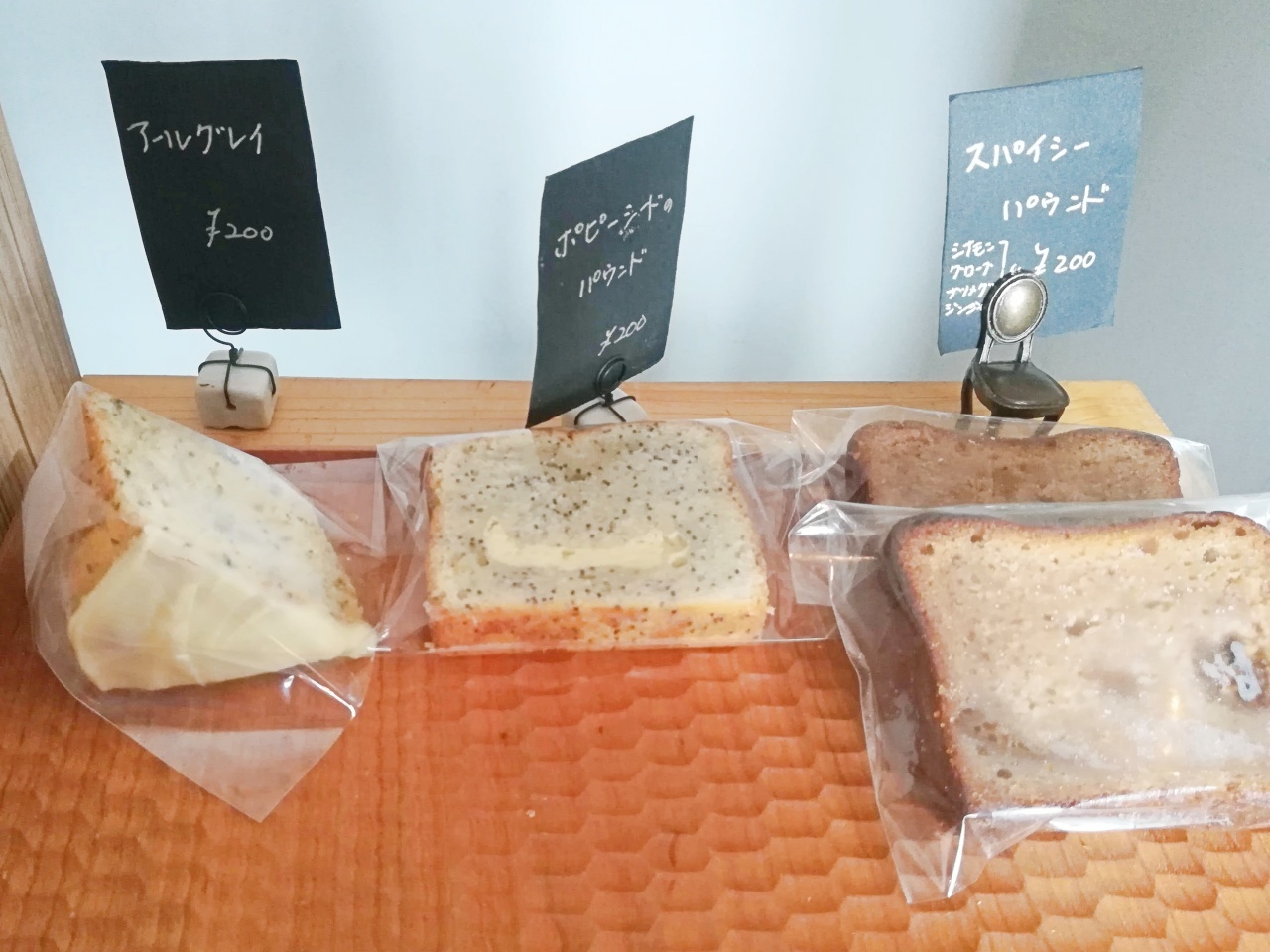 パウンドケーキは、アールグレイとポピーシードパウンド、スパイシーパウンドの3種類。