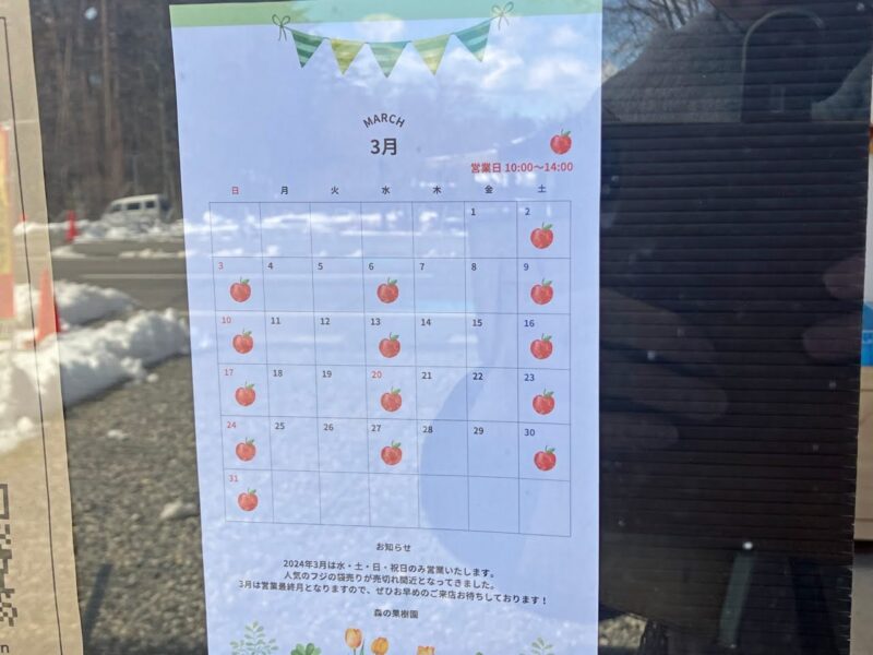 穂高の山麓線沿いにある「森の果樹園」さんでも、12月から3月にかけて、りんごの販売が行われています。