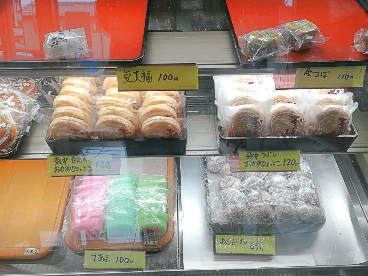 豆大福に金つば、最中おかめひょっとこ、あんドーナッツ、すあま。