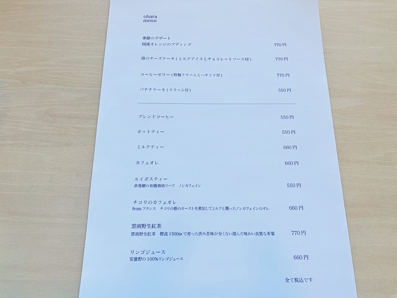 「ohara à hotaka」のメニュー