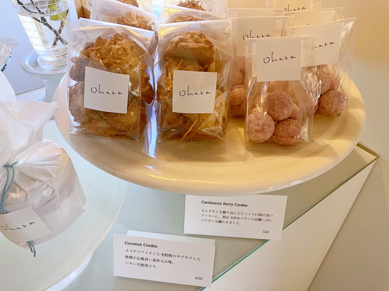 焼き菓子はクッキーなども販売されています。ココナッツやカルダモンを使ったクッキー。どれも気になる味わいですね。