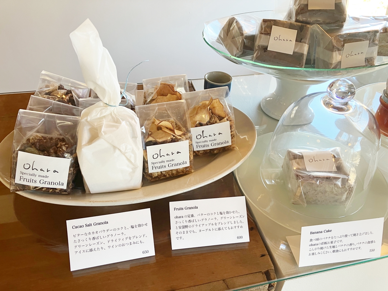 他にもバナナケーキやグラノーラも。ちょっとしたプレゼントなどにも持っていけそうですね。次はバナナケーキ食べてみたいな〜と思いました。