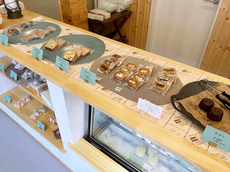 カウンター周りには焼き菓子も!どれもおいしそうで迷ってしまいますね。