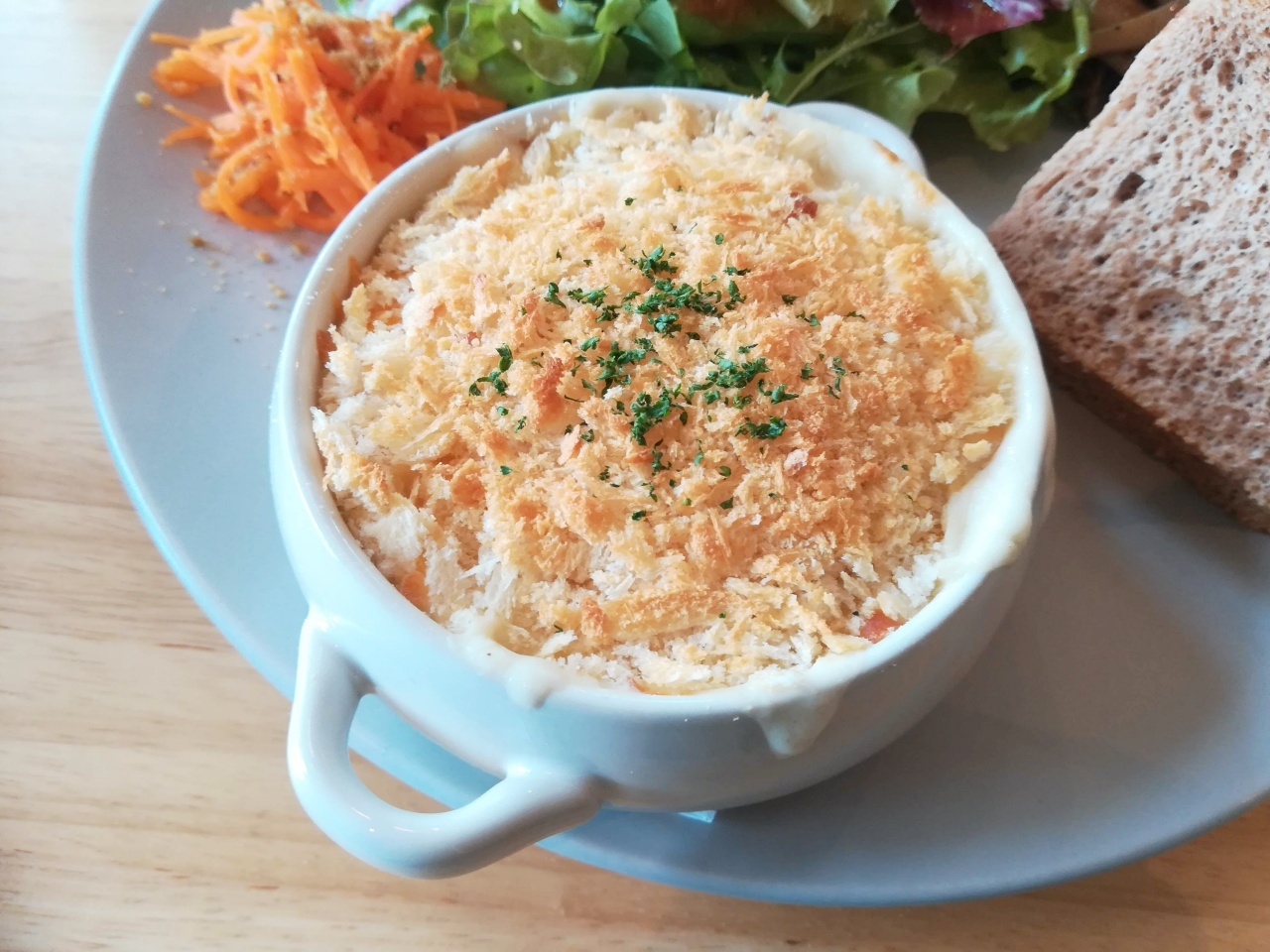 パン粉がかかっていて、カリッとした雰囲気が美味しさをそそりますね。