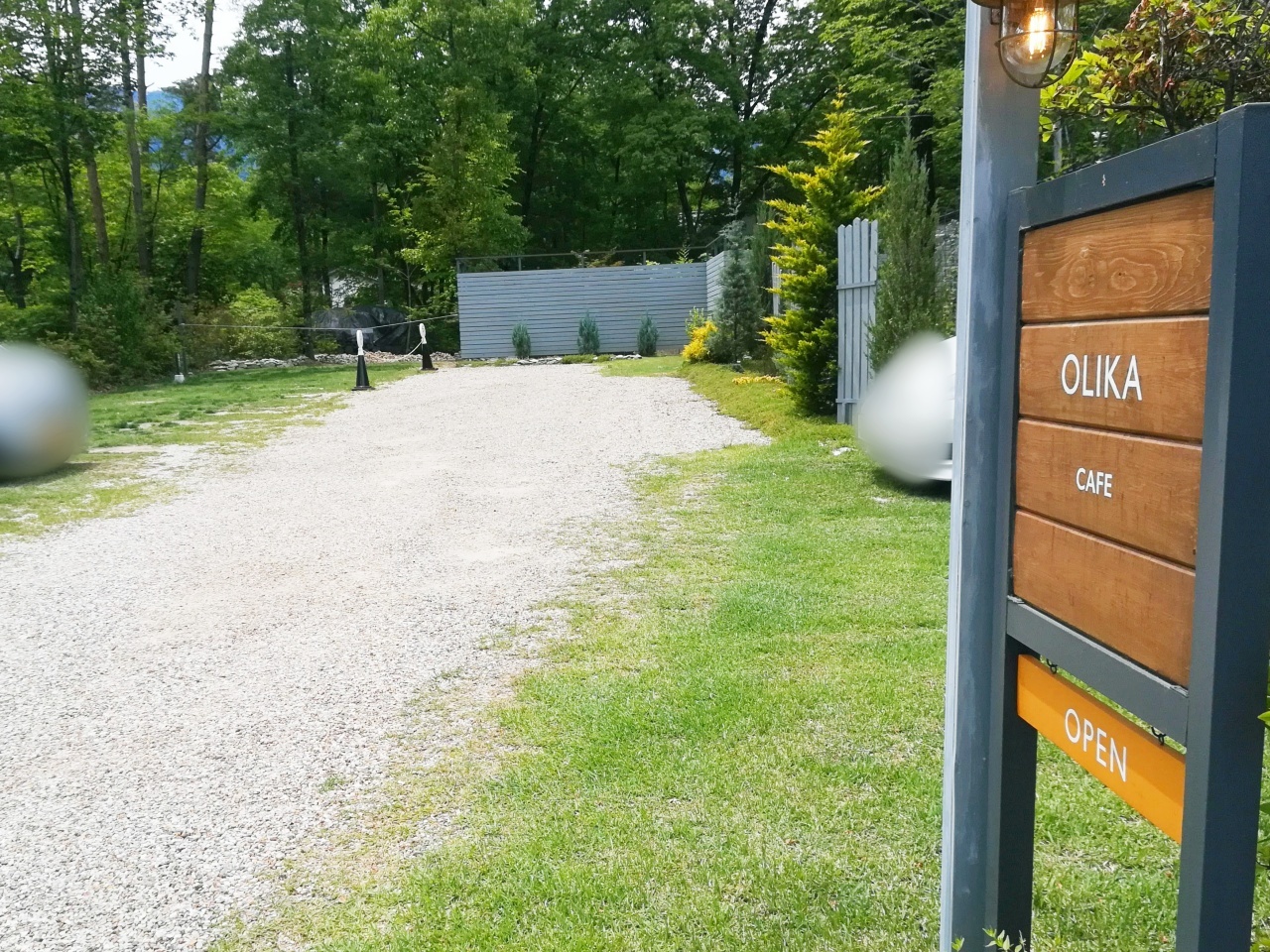 車を停めて奥に進むと、出てくる「OLIKA CAFE」の入り口。