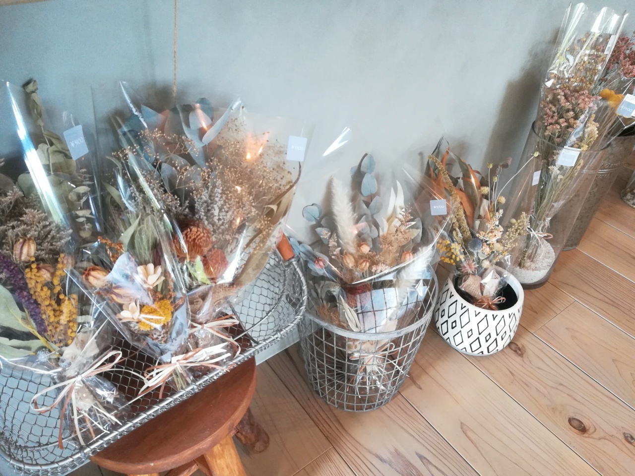 ドライフラワーなども飾られるおしゃれ空間が広がります。