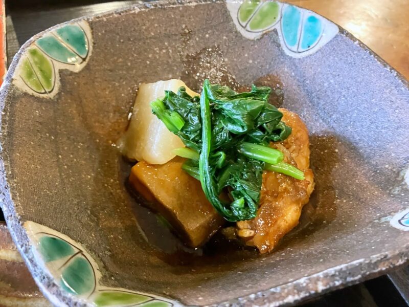 コシのある食べ応えのあるお蕎麦だったので、ゆっくりといただいていると「おそばにつく一品料理です」と、煮物を持ってきてくれました。