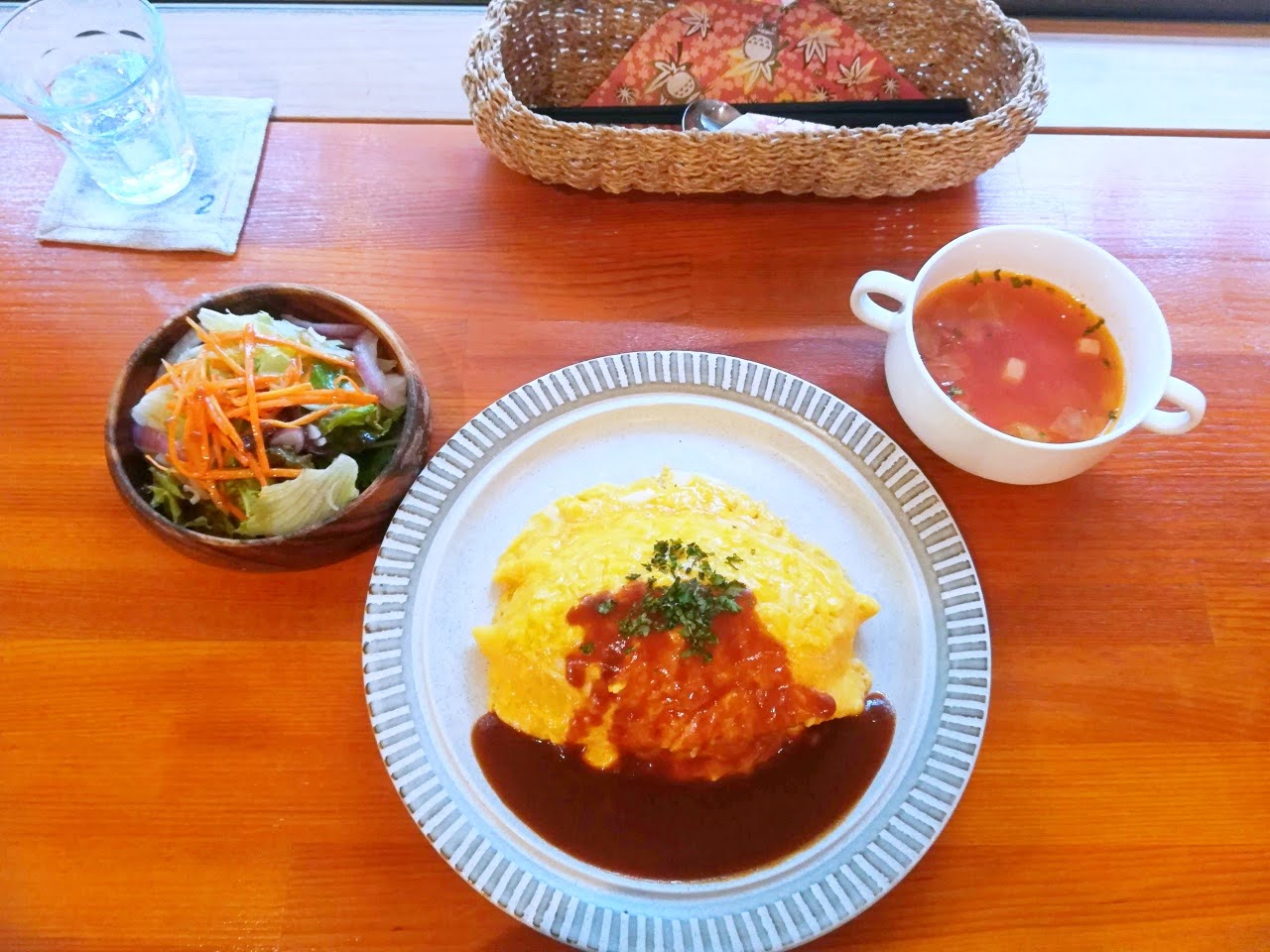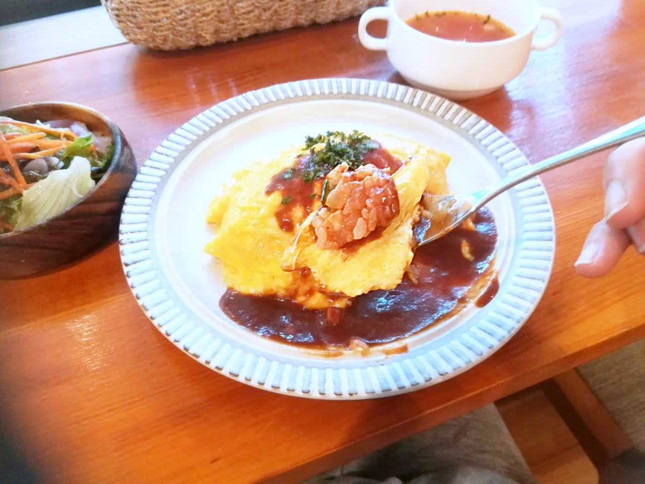 サラダとスープの後は、さほど待たずに、オムライスも登場!