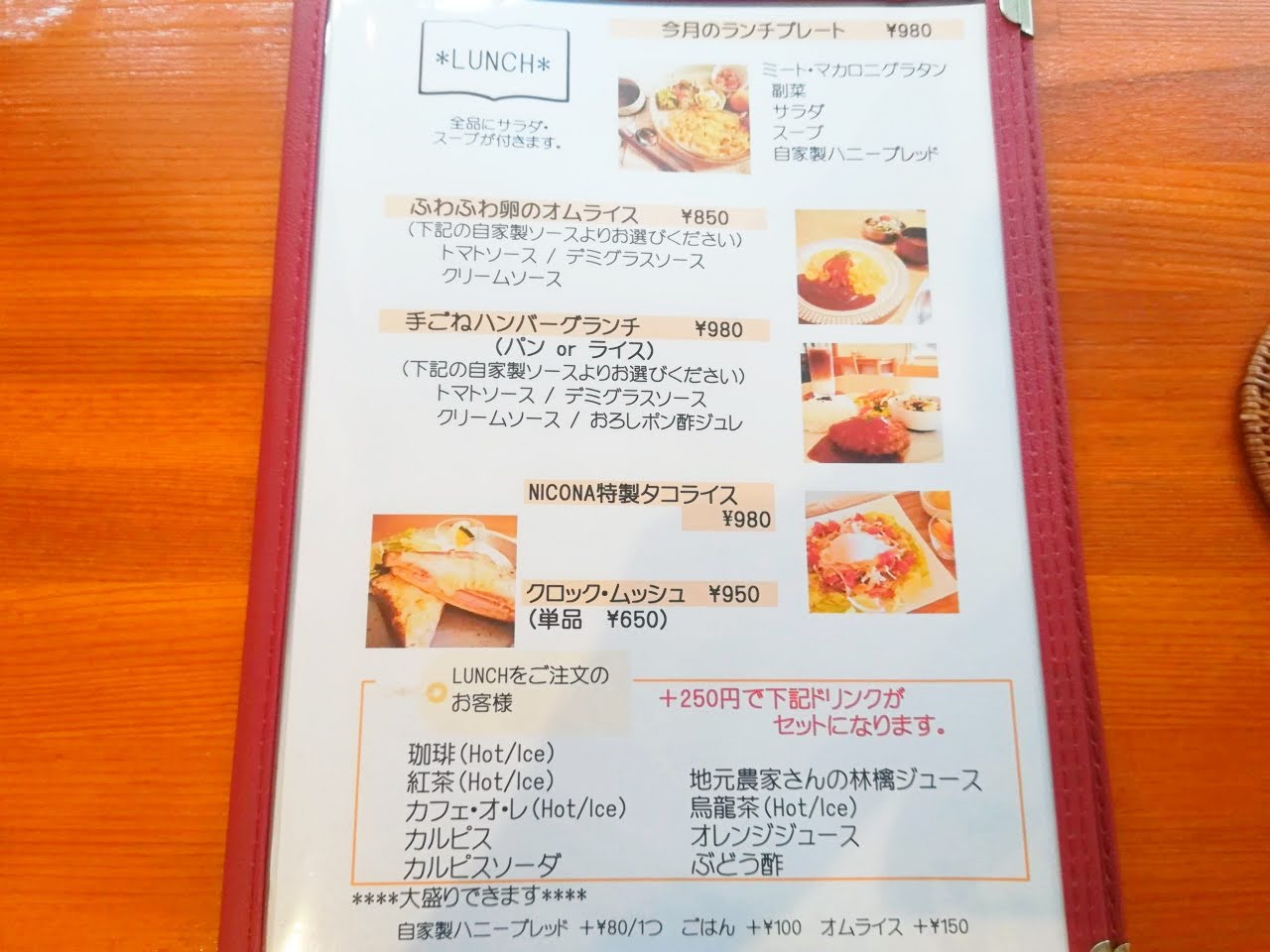 月替りのランチプレートは、マカロニグラタンですね。オムライスやハンバーグも気になるところですね。