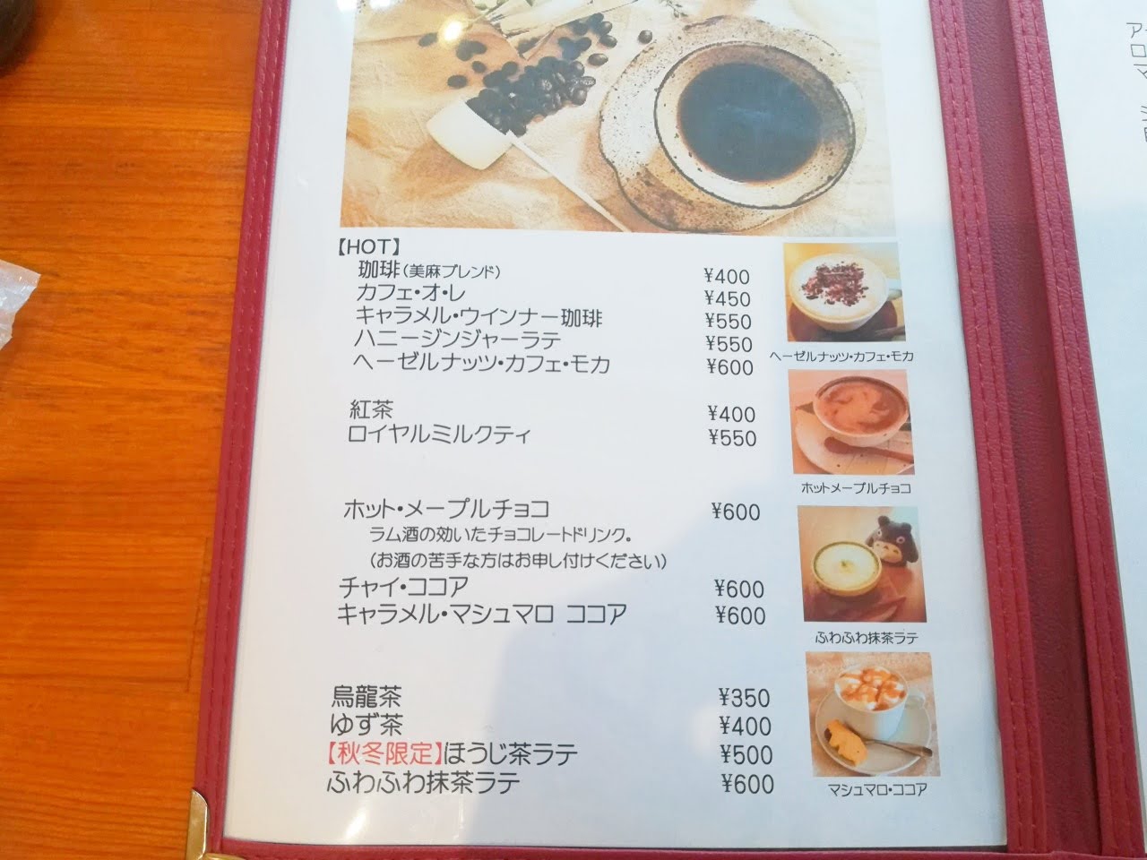 こちらは冷たいドリンクのメニュー。