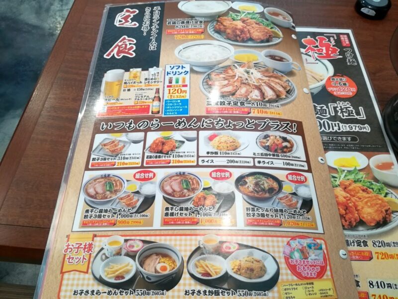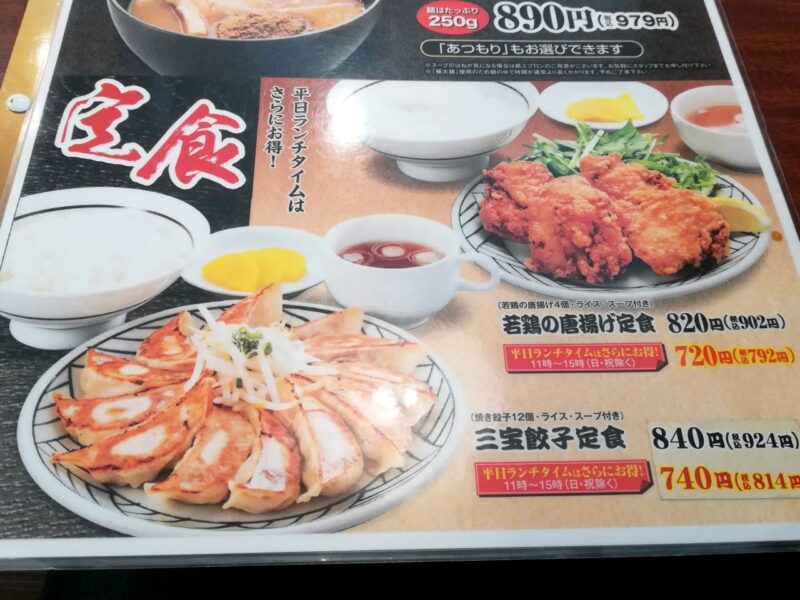 ラーメン以外にも唐揚げや餃子の定食も。