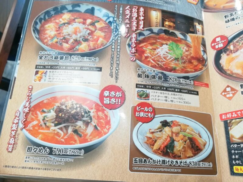 他にも、麻婆麺や坦々めん、サンラータン麺なども用意。