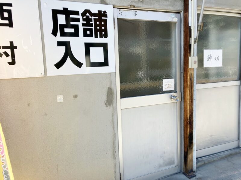 入り口は看板横にあるこちらのアルミの扉。