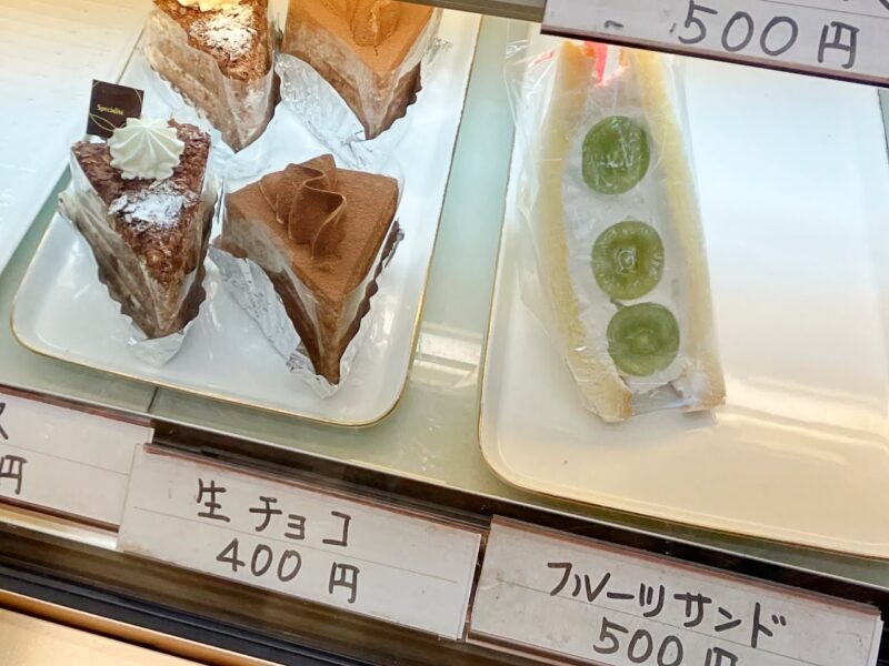 まずは生チョコケーキと人気のフルーツサンド。