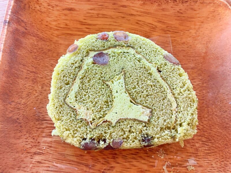 すでにカットされてつつまれていた抹茶ロール。袋を開けた瞬間に抹茶の香りが。