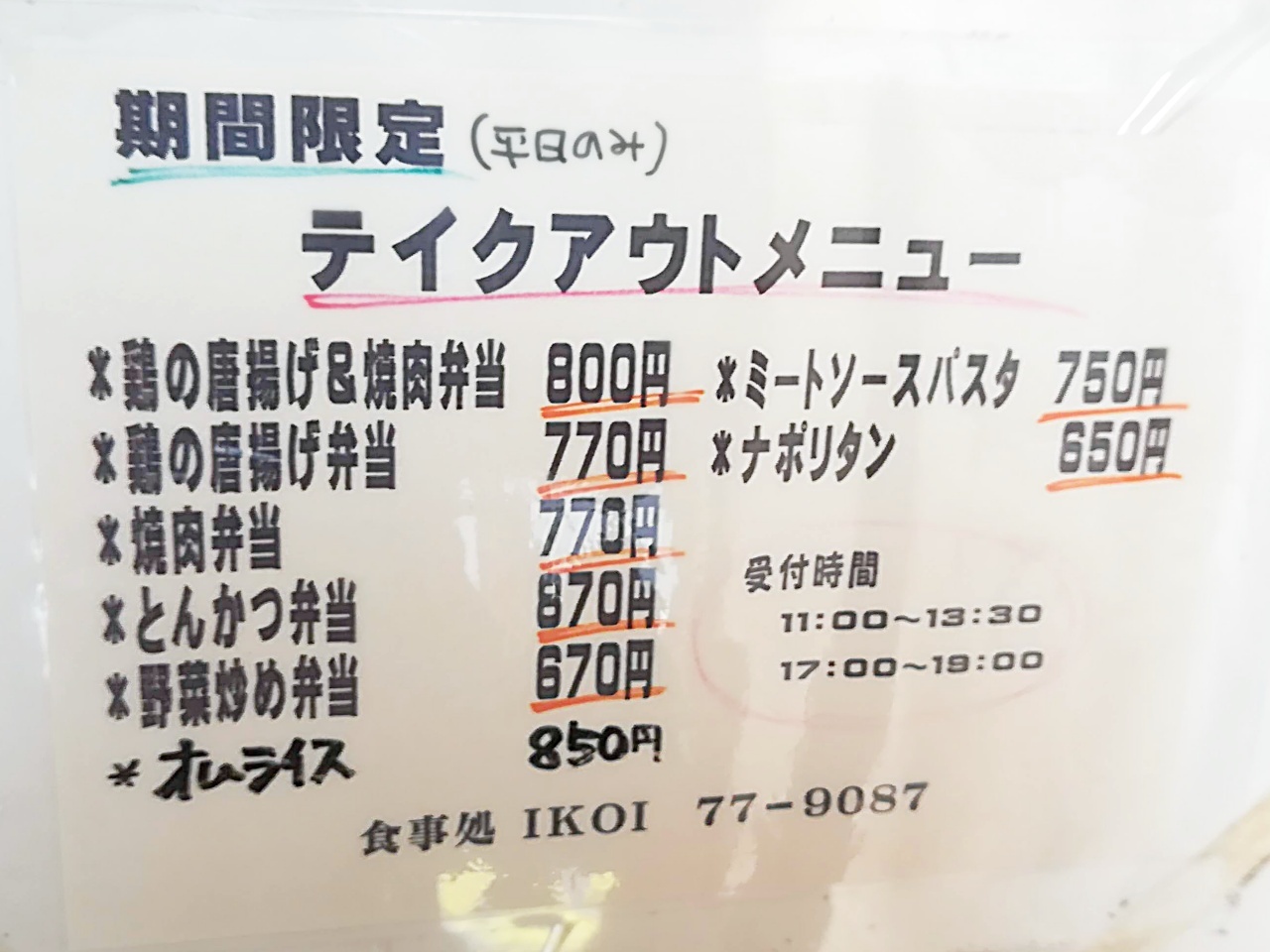ちなみに期間限定で、テイクアウトメニューもあります。
